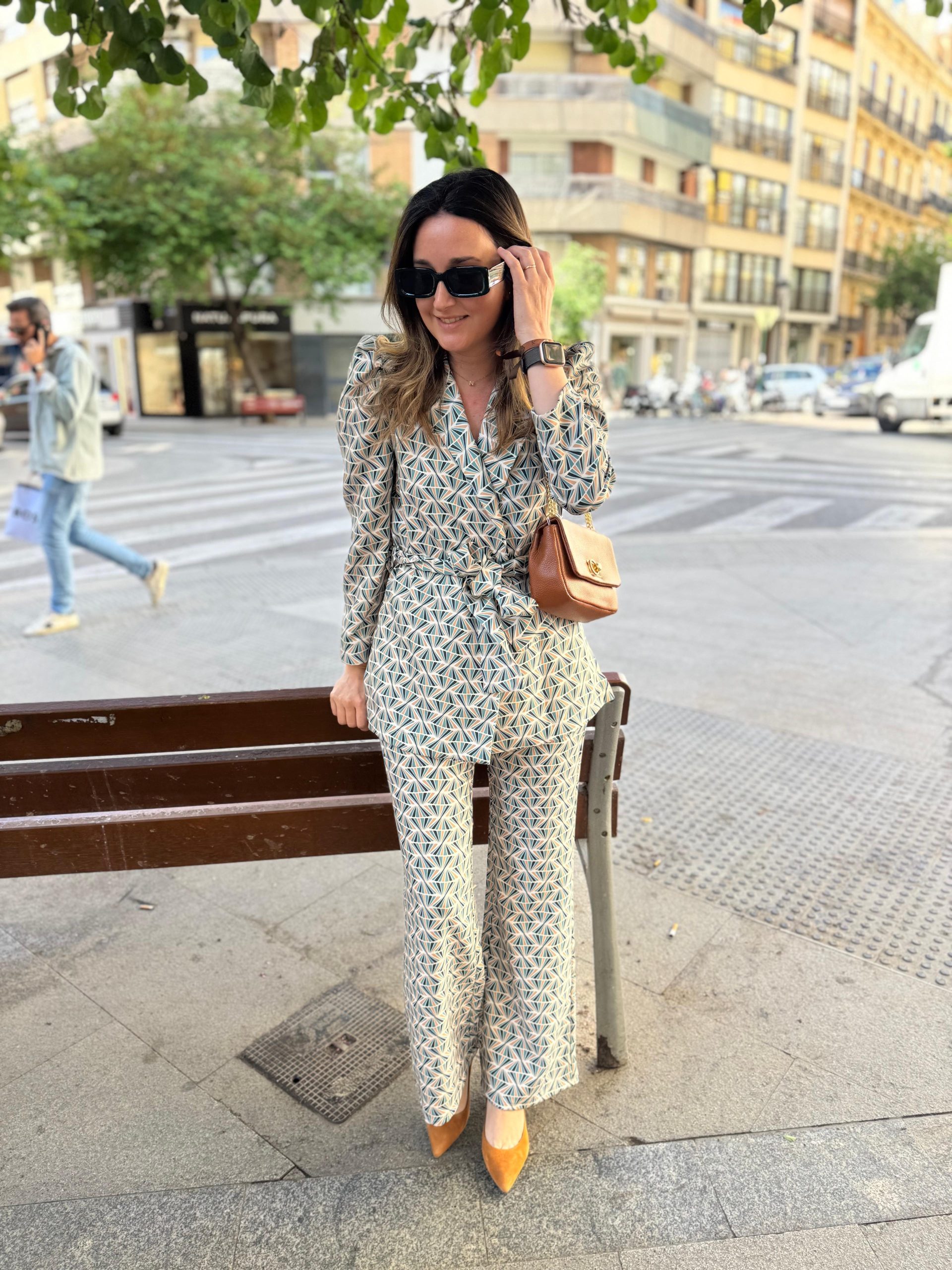 CHAQUETA DE PUNTO DE SEDA ESTAMPADA CON CINTURÓN. TRES TALLAS.