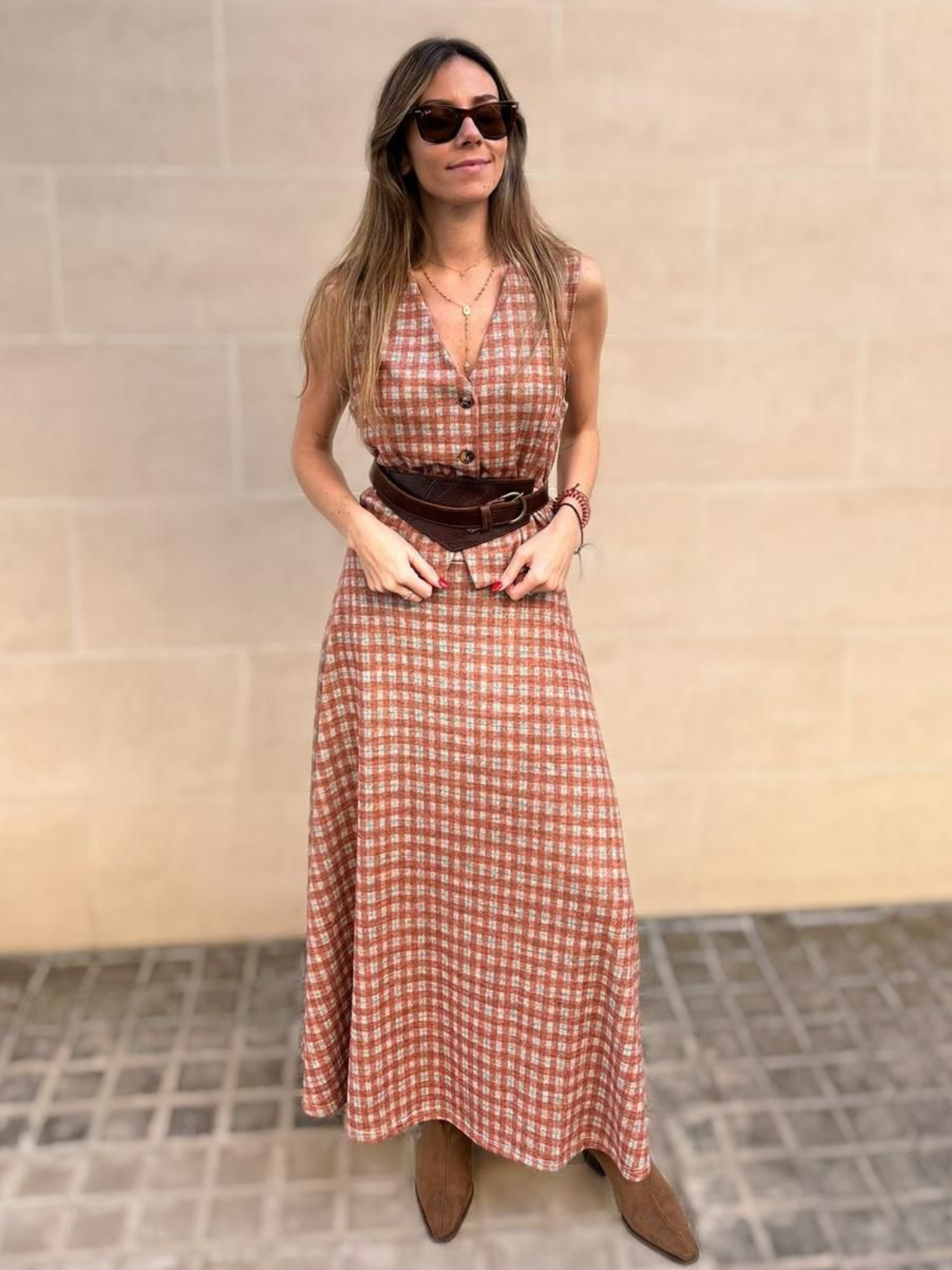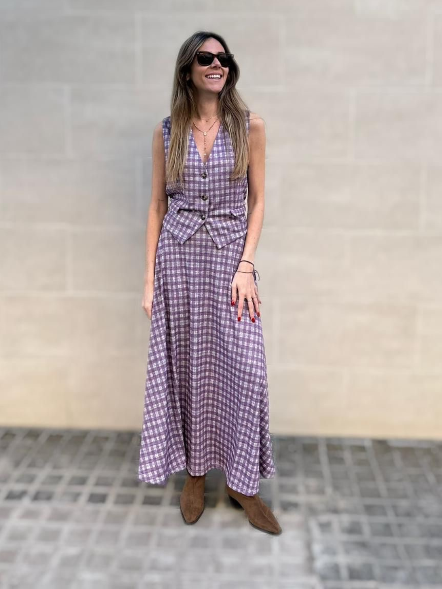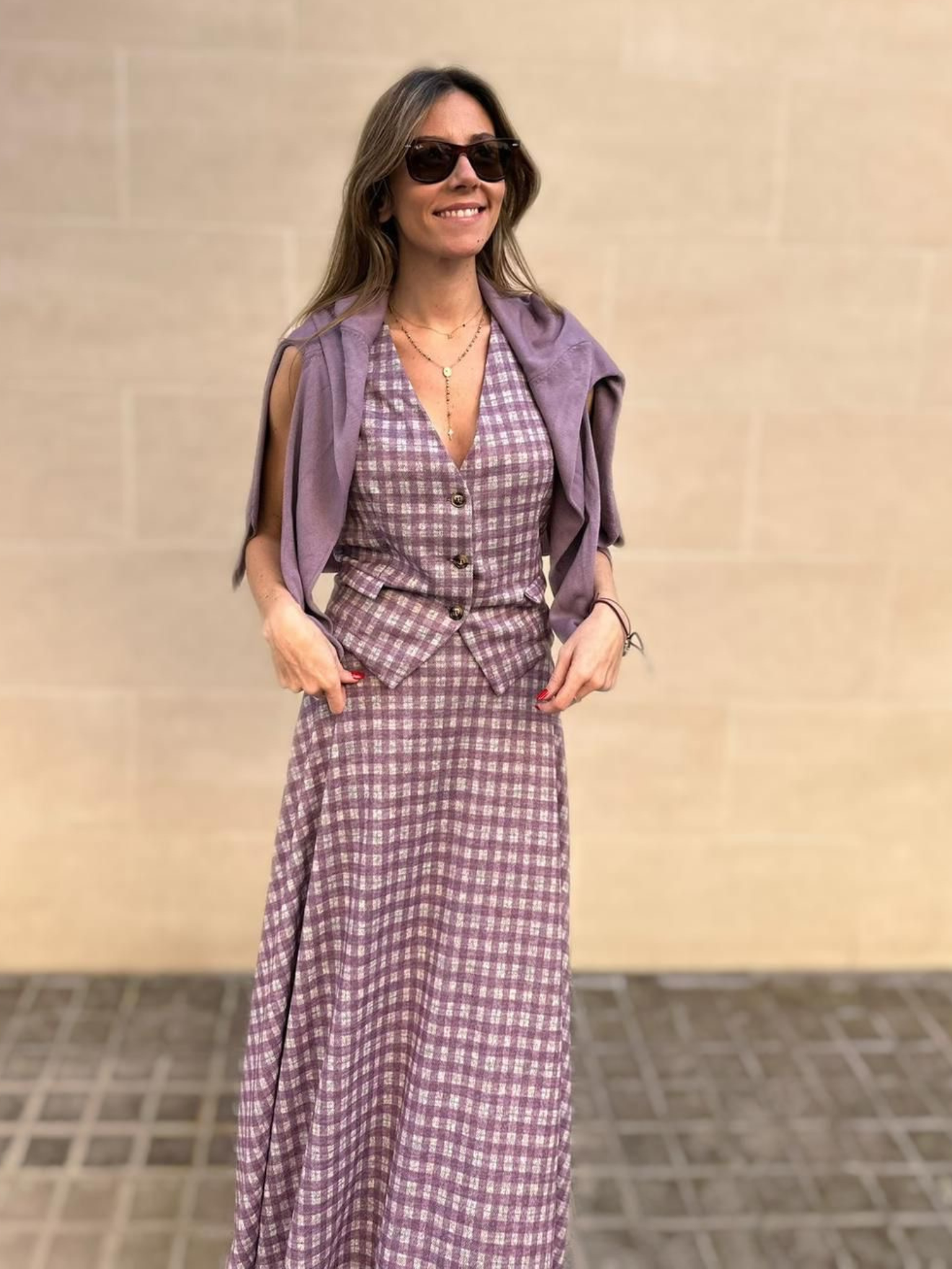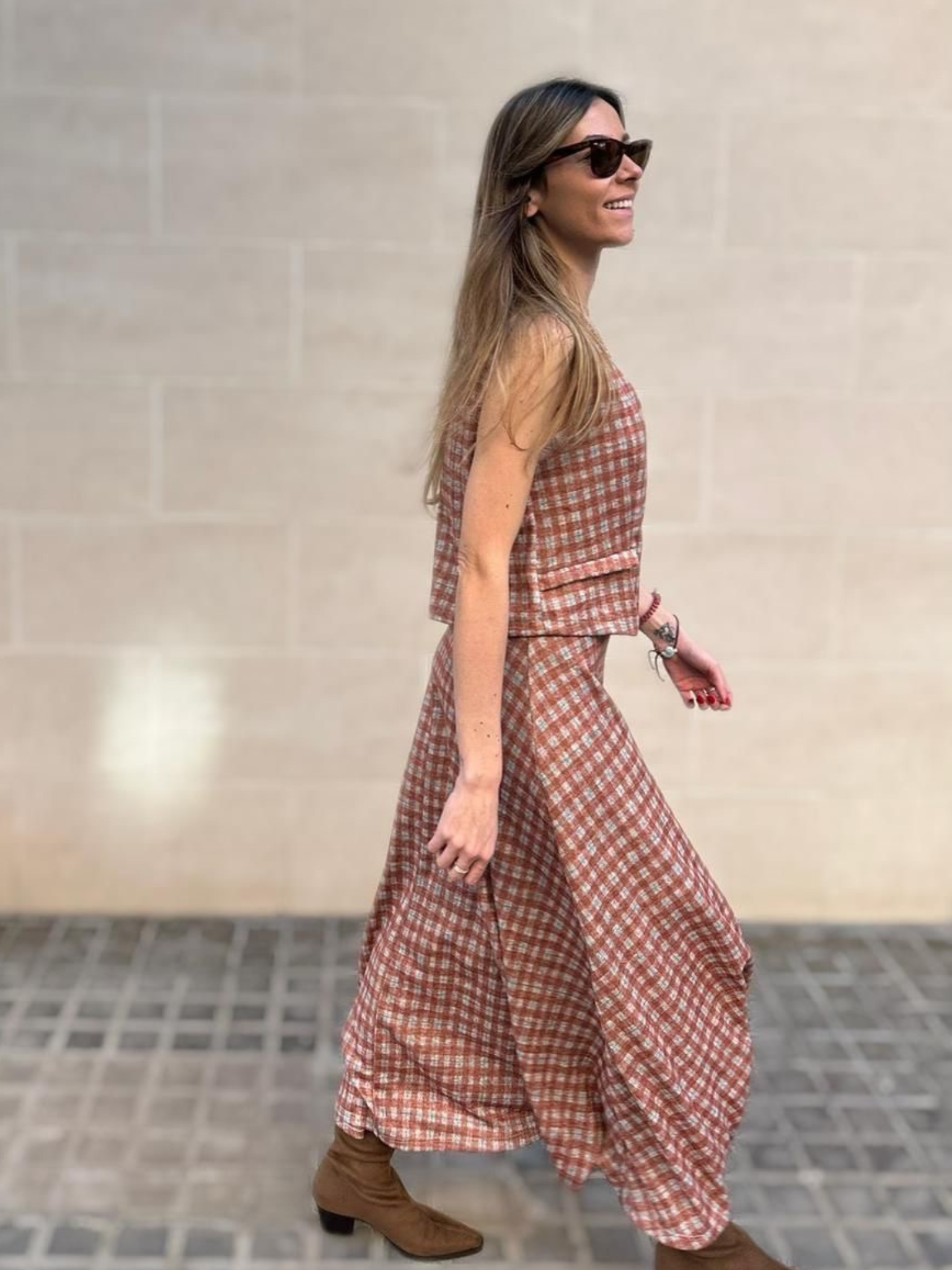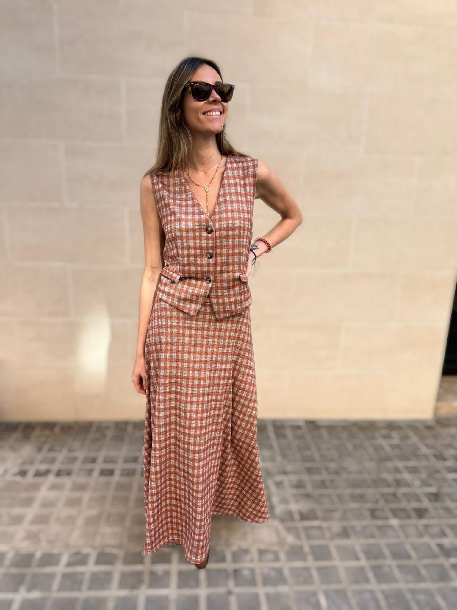 FALDA DE PUNTO EVASÉ ESTAMPADO DE CUADROS. DOS COLORES. TALLA ÚNICA.