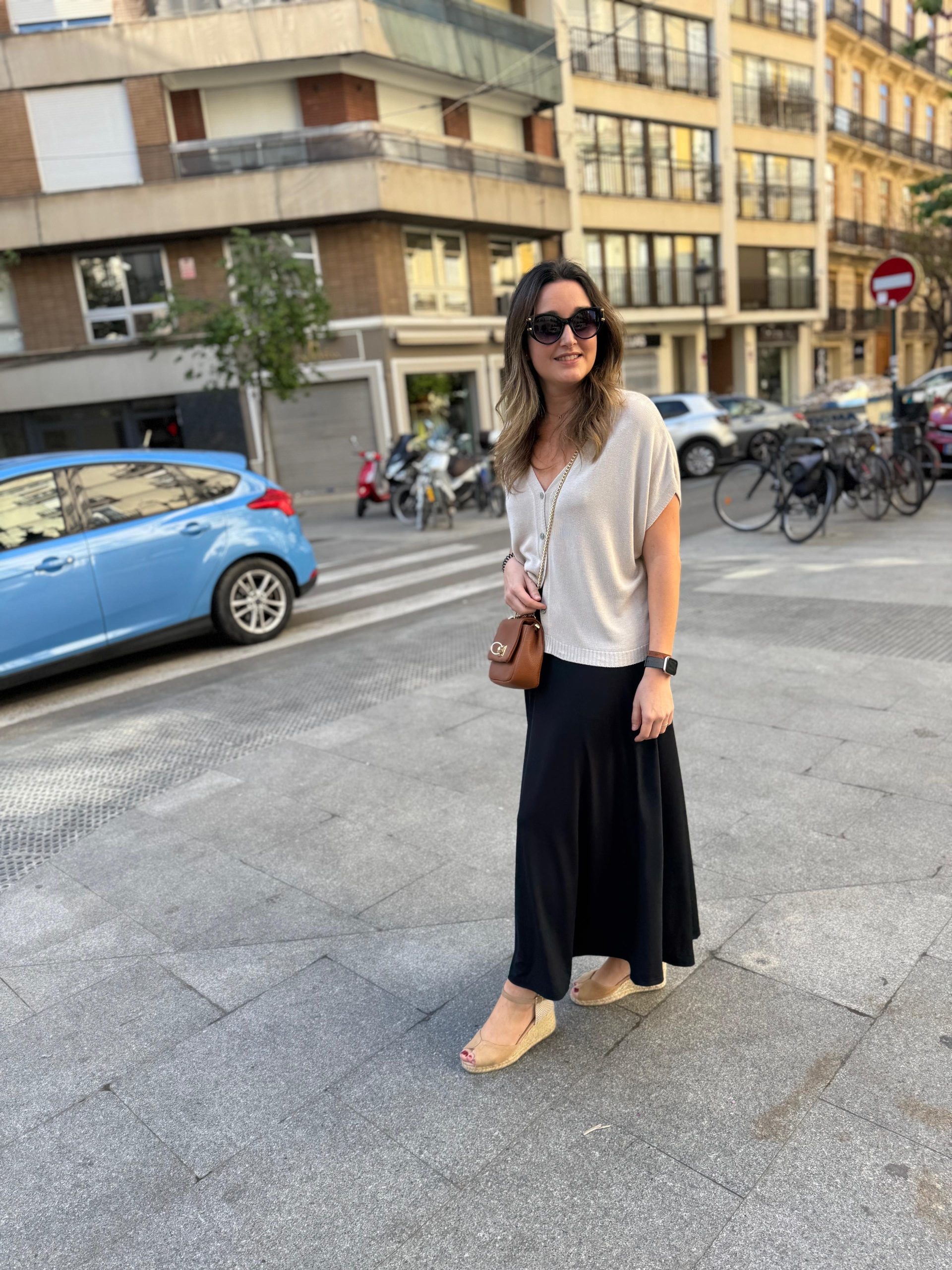FALDA LISA DE PUNTO DE SEDA. TALLA ÚNICA, GOMA EN CINTURA. HASTA UNA 44 APROX.