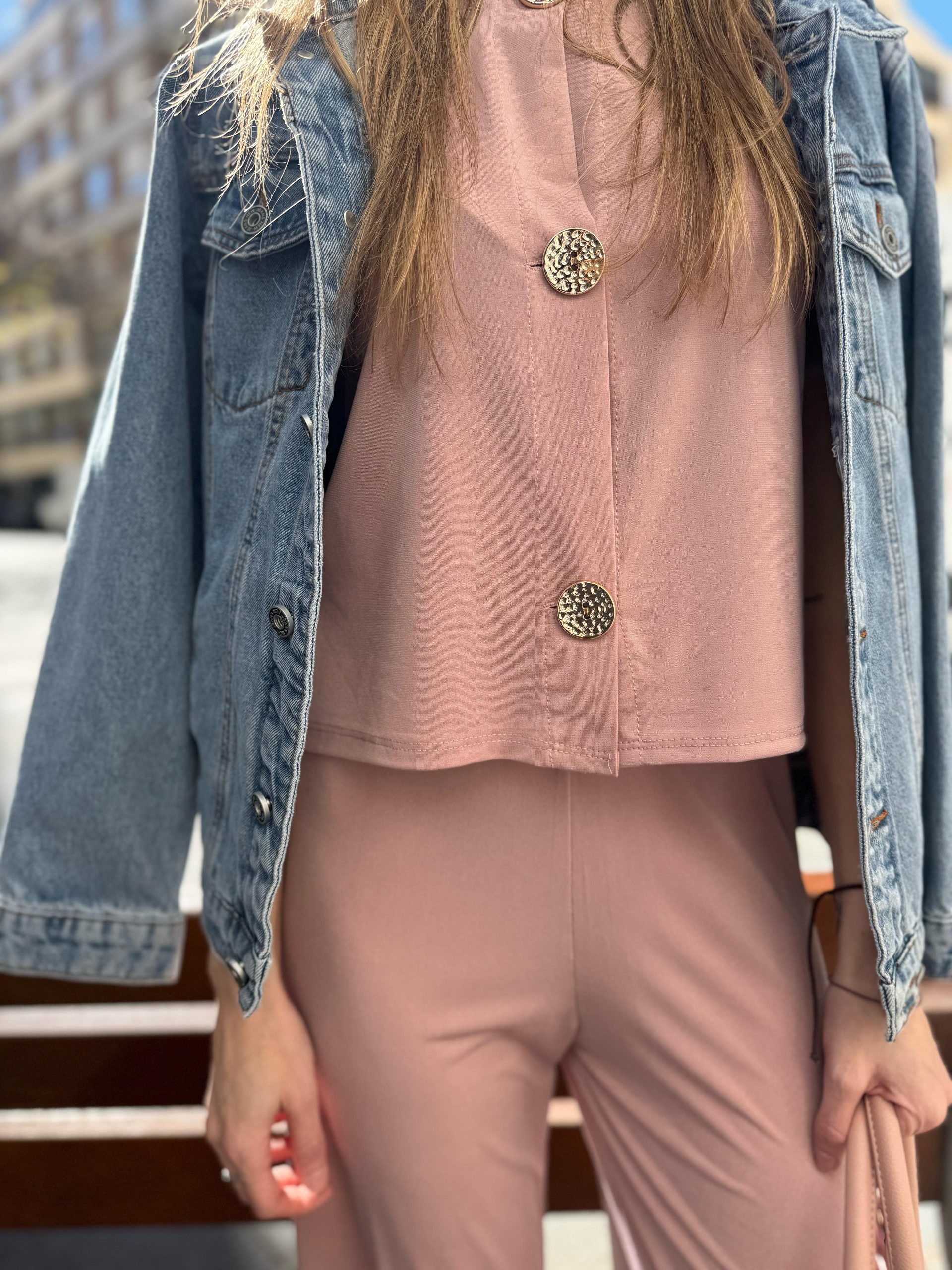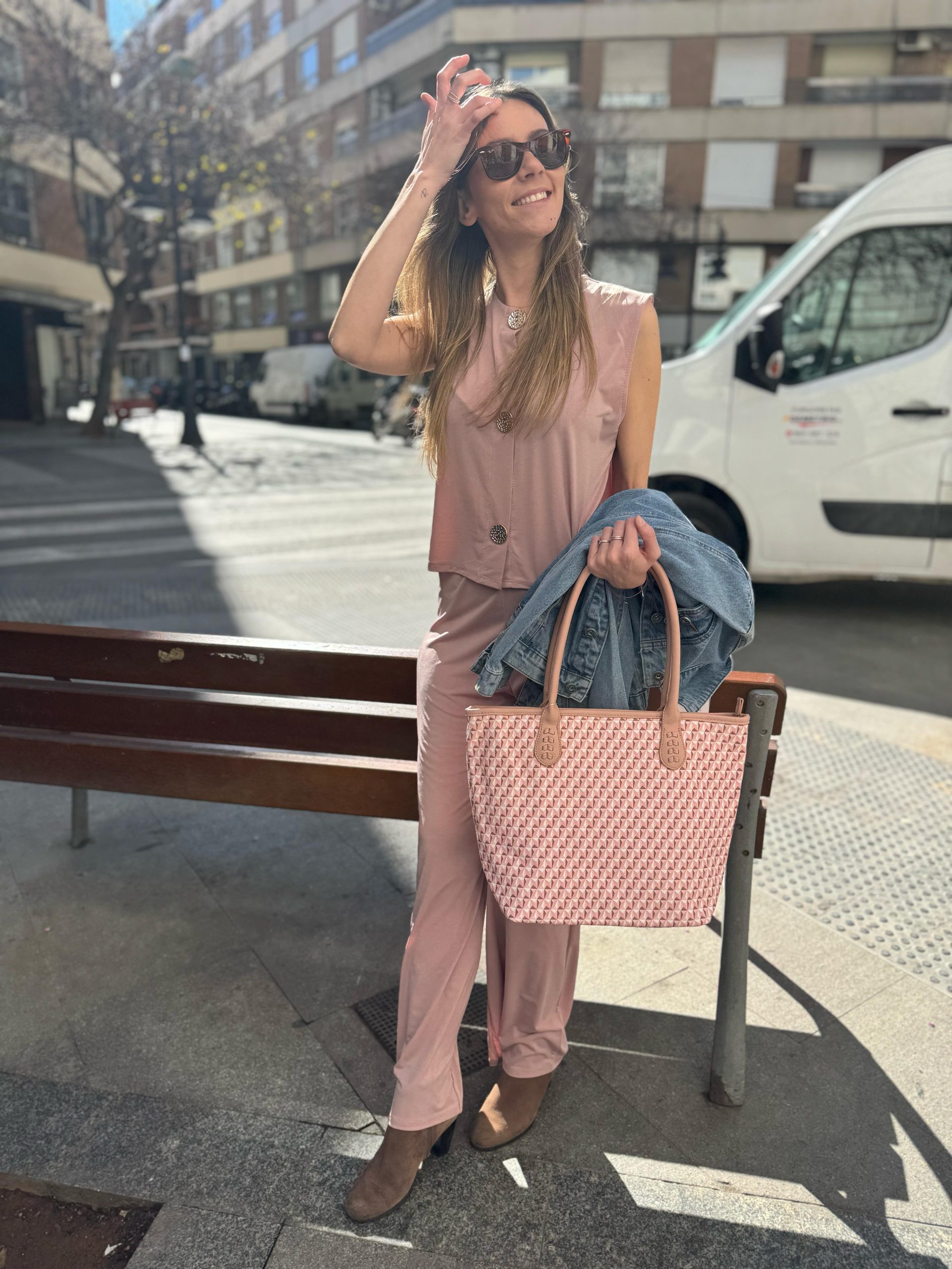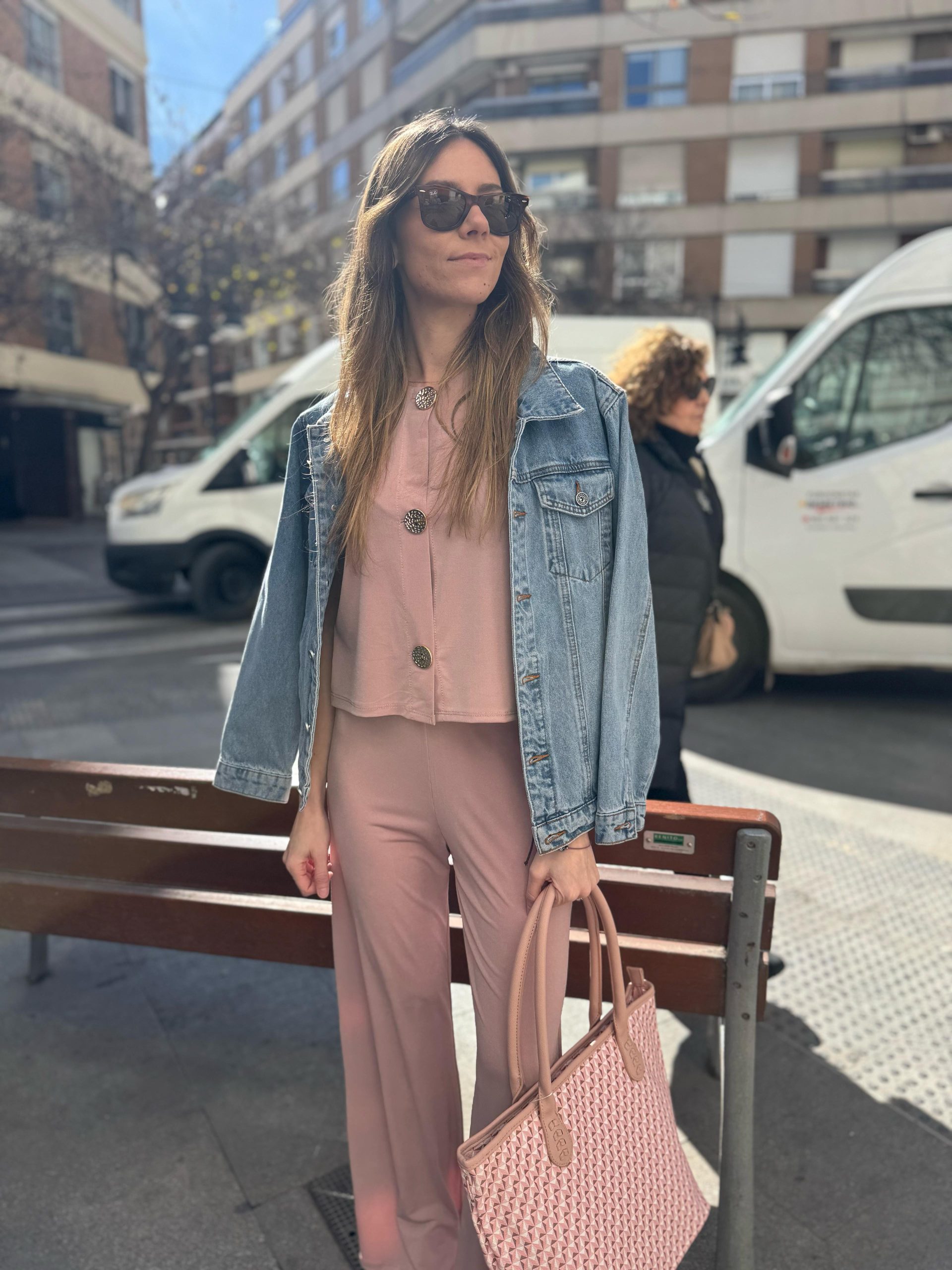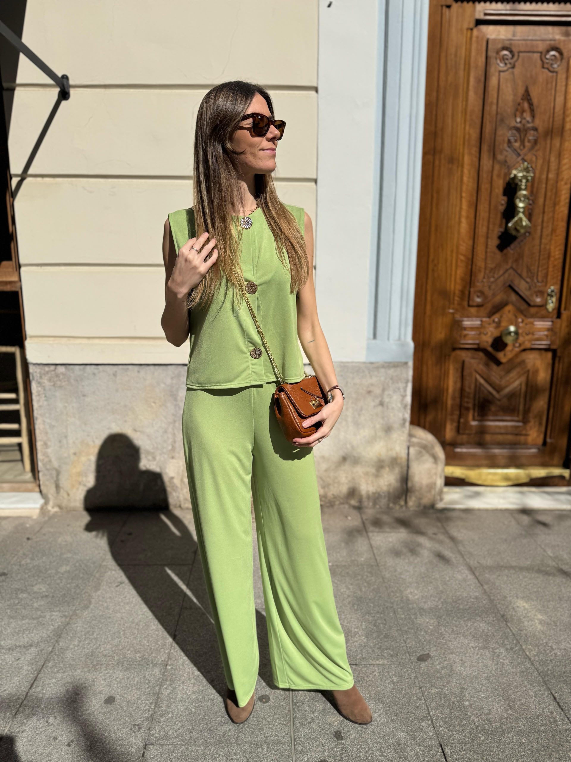 PANTALÓN LISO DE PUNTO DE SEDA. ELÁSTICO Y CON GOMA EN CINTURA.