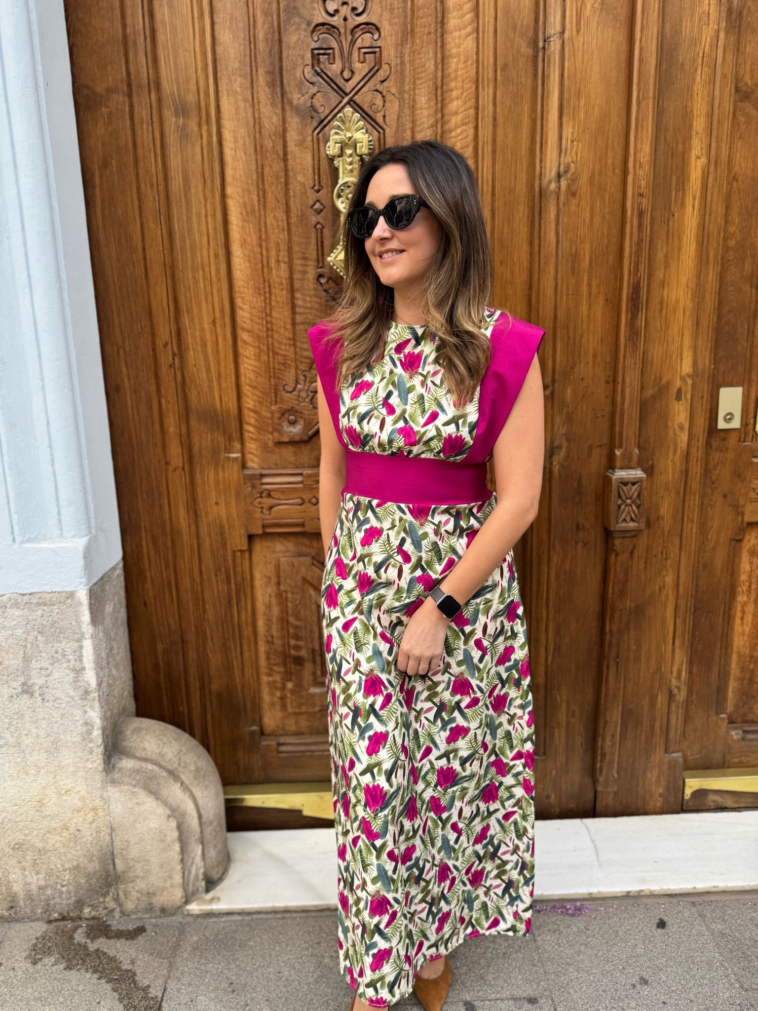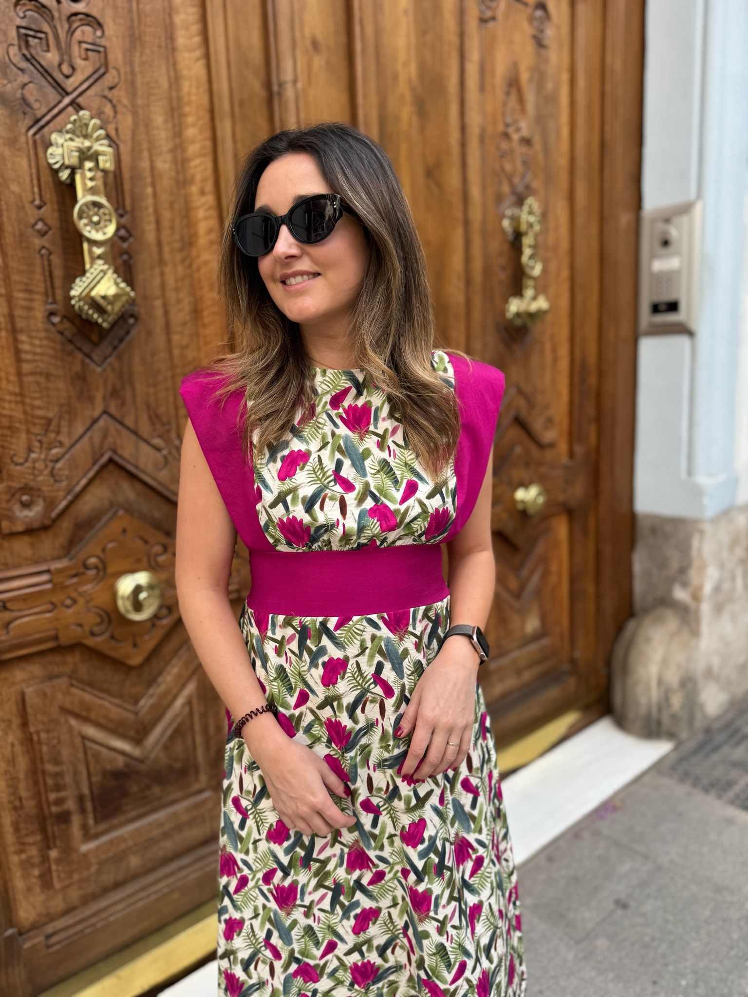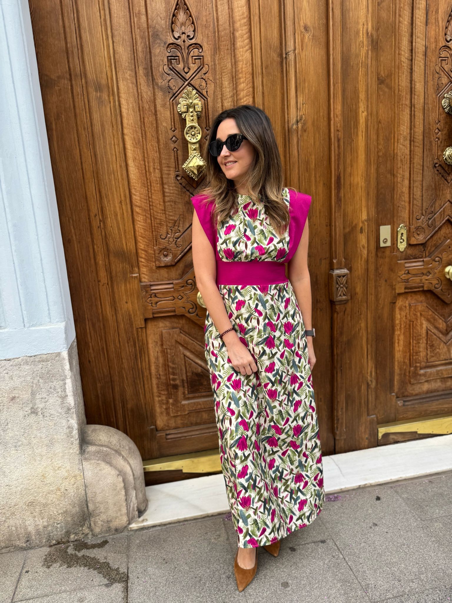 VESTIDO ESTAMPADO FAJÍN CONTRASTE