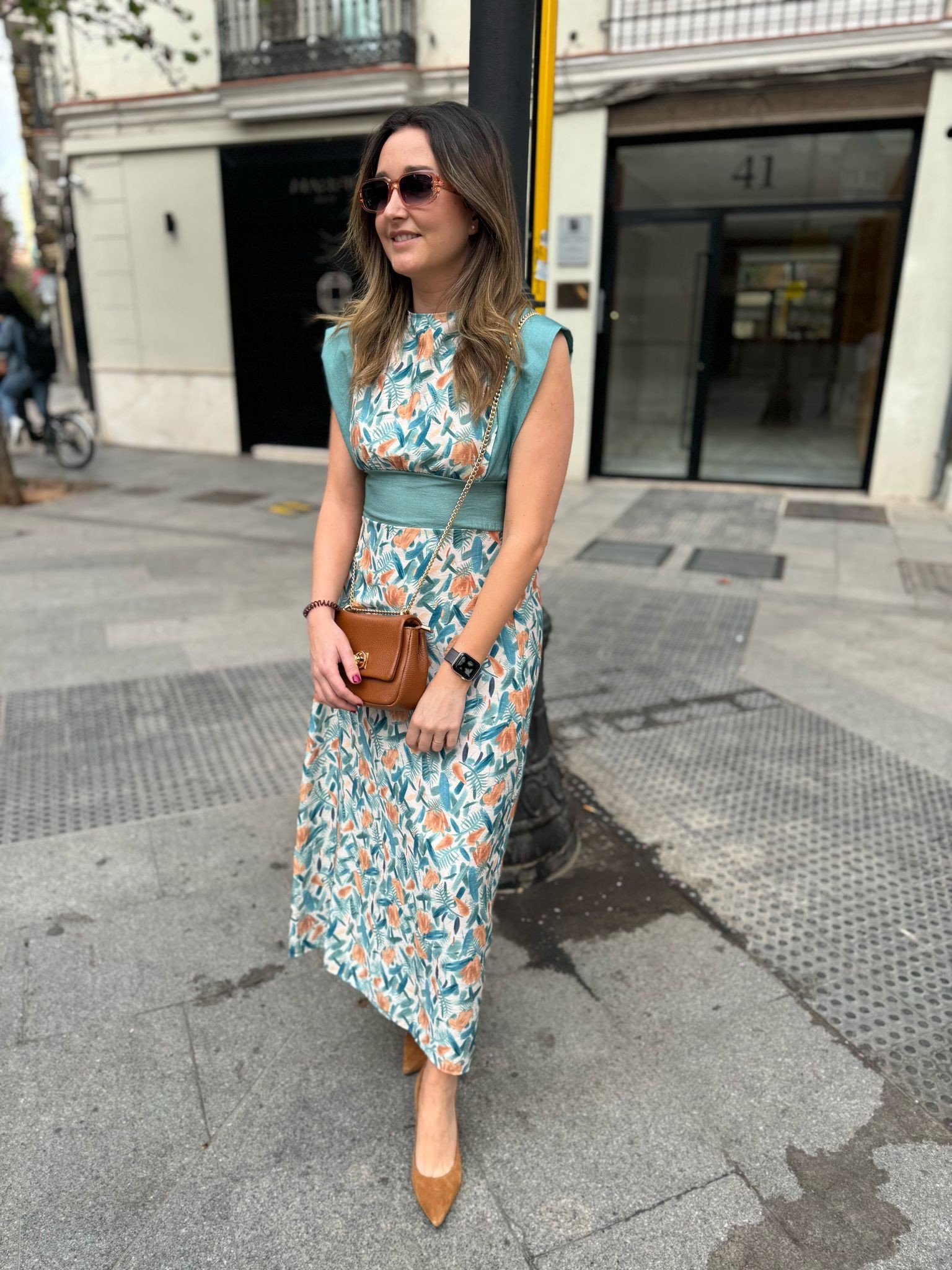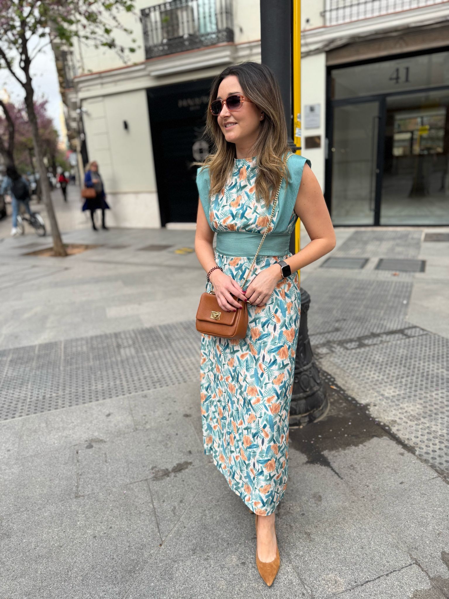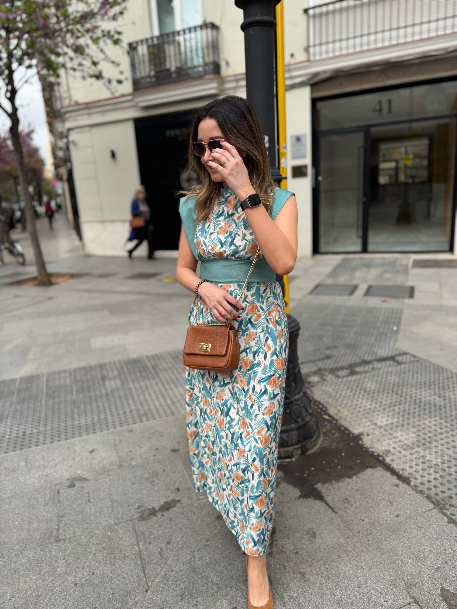 VESTIDO ESTAMPADO FAJÍN CONTRASTE